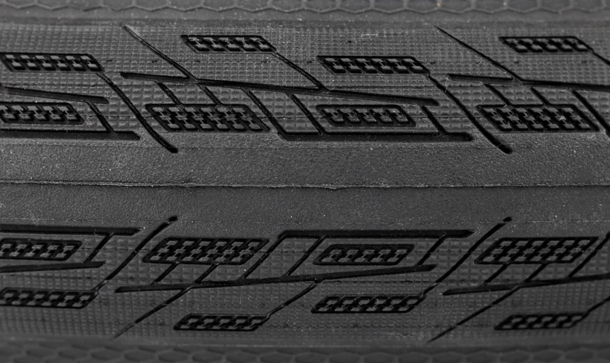 • Bande de roulement centrale lisse sur laquelle a été ajouté un agent chimique augmentant la friction